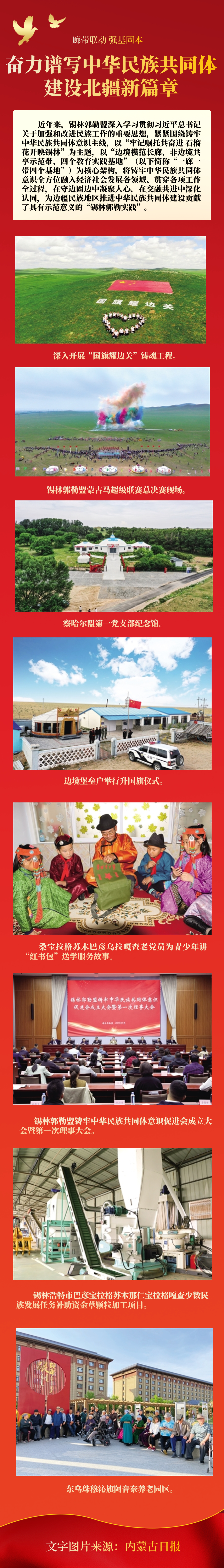 锡林郭勒盟在锡林浩特市、西乌珠穆沁旗等8个非边境旗市(管理区),聚焦构筑中华民族共有精神家园,全力打造民族团结进步共享示范带。