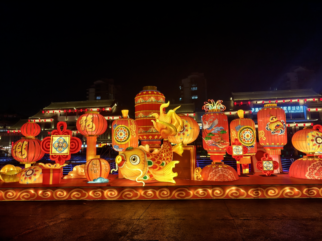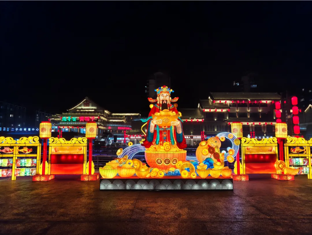 与此同时,13组大型主题灯组全部亮灯。高铁站北广场的“瑞灯贺春”以红金为主色调,传递团圆喜乐;百合园内“狮启福运”与“新春纳福”灯组动静结合,狮跃龙腾,寓意吉祥兴旺;黄河湾步行街沿线,“骏启鸿财”“十二生肖”“百花仙子”等灯组依次展开,融民俗文化与现代灯艺于一体,展现出一幅“马上迎福、百花报春”的生动图景。市政府南广场的“花开富贵”巨型花篮灯组,以百花簇拥之姿呼应“中华民族一家亲,同心共筑中国梦”的美好愿景;区政府广场的“五谷丰登”灯组则通过丰收意象,传递出踏实暖心的幸福感。据悉,此次亮化工程共采用节能灯具36类、2.5万余盏(件),兼顾环保性与艺术性。