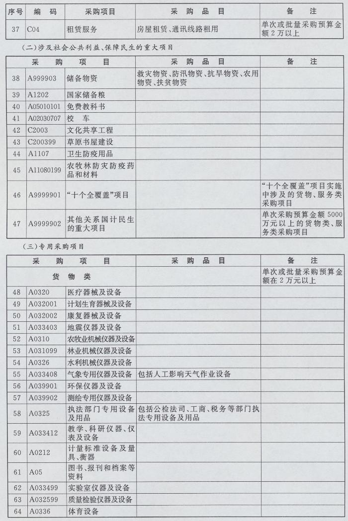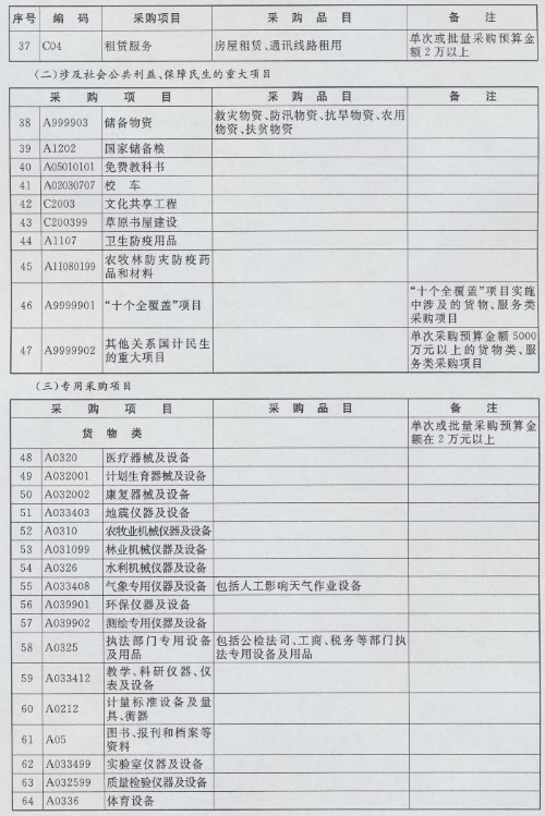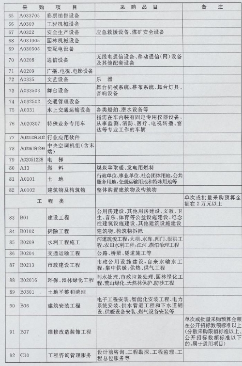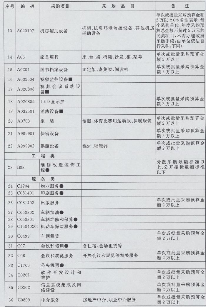 集中采购目录、限额标准和公开招标数额标准